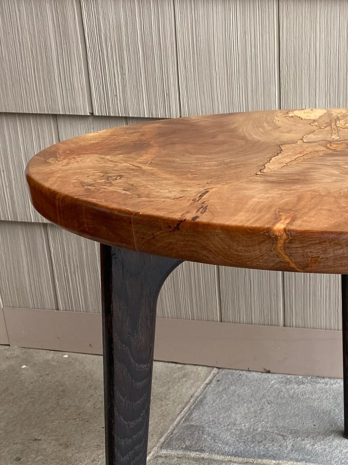 Is a Circle Tri-Table with two different types of wood on the top and legs available?